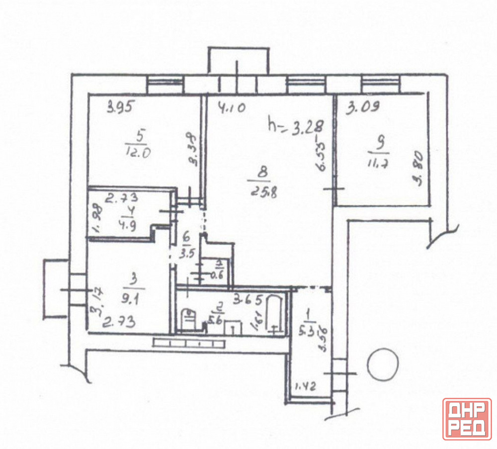 высота потолков: 3,3 м.