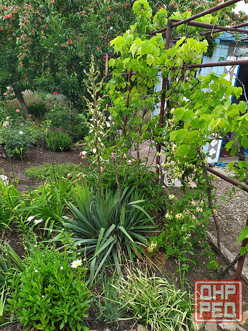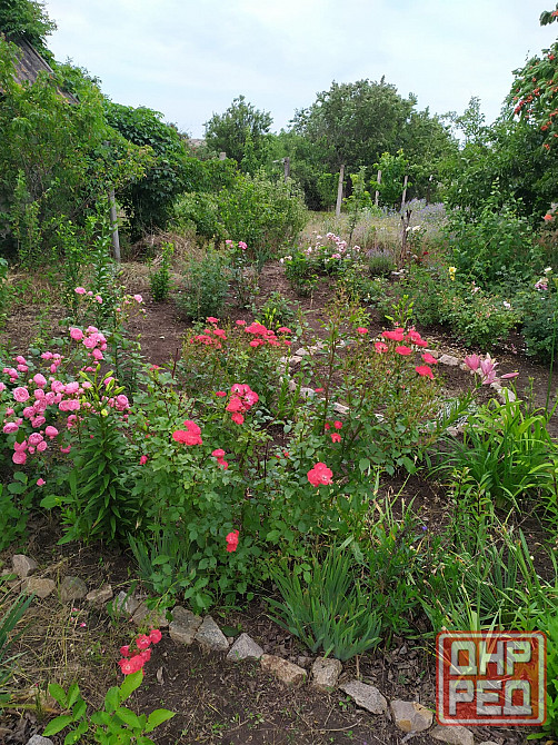 * зелёный двор с плодовым садом: черешня, вишня, алыча, груши, абрикос, яблони, смородина, крыжовник.