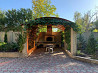 территория участка благоустроена и разделена на несколько зон: есть ландшафтная зона с водоёмом и имитацией родника, беседка с мангалом, зона для выращивания растений, парковка и другие удобства. за дворовая территория включает асфальтированную парковку, мини-рощу, газон, спортивную и детскую площадки.