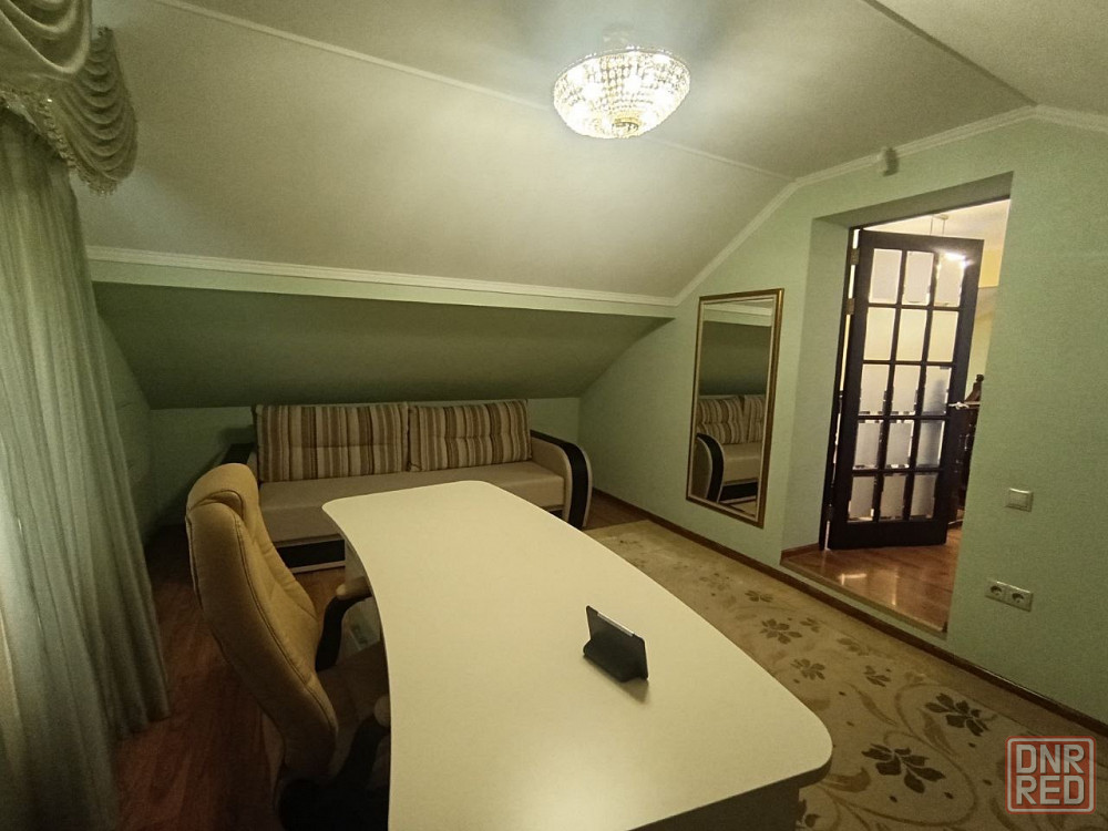 6 комнат кухня - гостиная, 3 спальни, кабинет, гостиная на втором этаже, 2 санузла. в доме установлена сигнализация, видеонаблюдения.