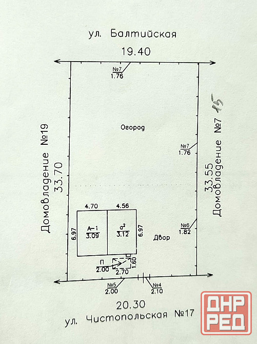 общая площадь земельного участка – 6,6 сотки. ограждение – профлист.