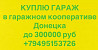 куплю гараж в гаражном кооперативе донецка до 300 т.р.