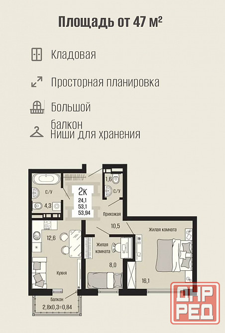 площадь: от 29 м²