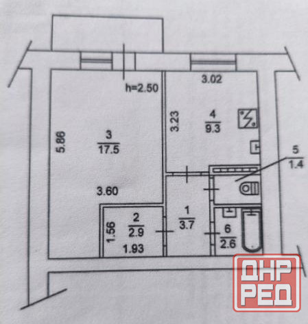 Общая площадь: 38 м2