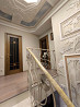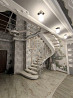 литая монолитная лестница из итальянского мрамора calacatta с дизайнерской ковкой.