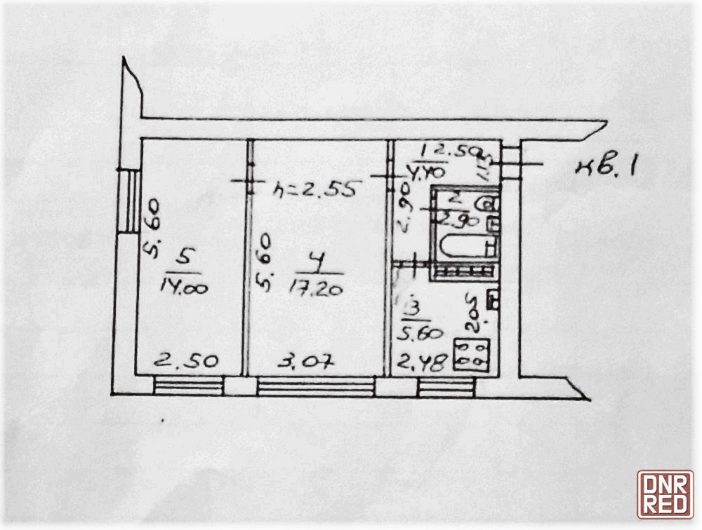 общая площадь квартиры – 44.10 кв. м, кухня – 5.6 кв.м.