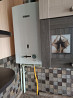 мебель встроенная новая на кухне, колонка, газовый счётчик, холодильник, чугунные батареи
