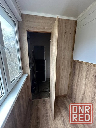 застекленная большая лоджия с гардеробной для хранения.