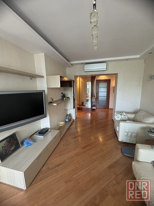 продается 4 комнатная квартира на донецк сити. дом кирпичный. общая площадь 108 квадратов. расположена на 5 /10 этаже . большой холл, кухня, гостиная, три спальни , гардеробная, два санузла . полностью укомплектована, мебель, техника. накопительный бак, бойлер. документы готовы.