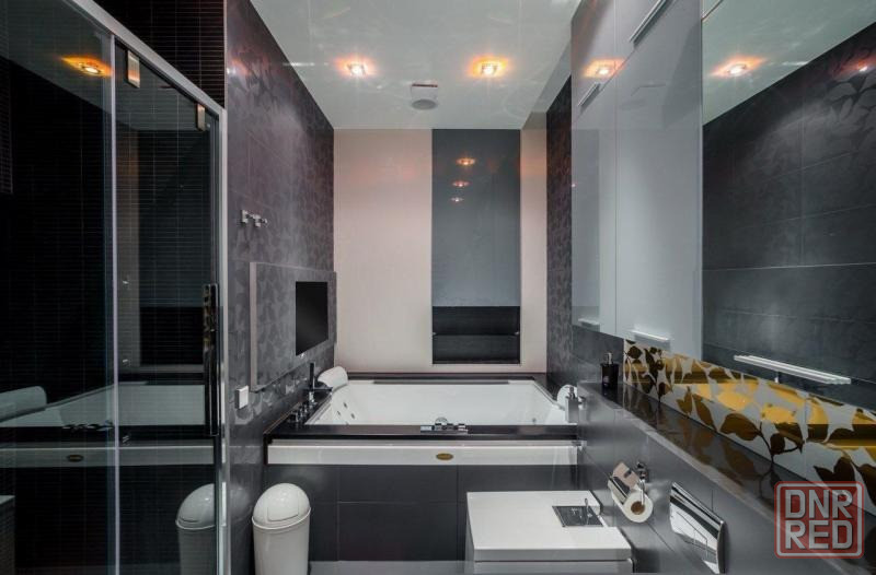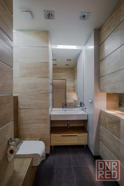 дизайнерский ремонт выполнен с использованием высококачественных материалов: травертина и мраморной мозаики. натяжные потолки торговой марки «demi-lune» гармонично дополняют интерьер.