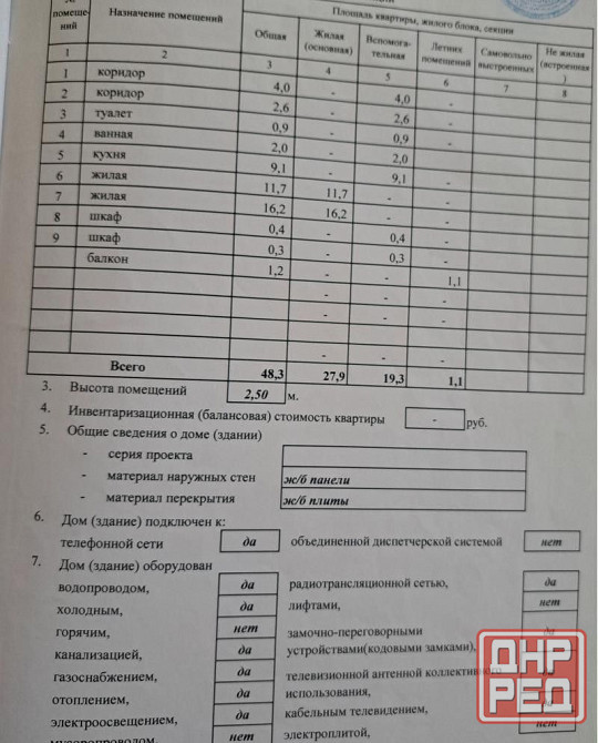 общая площадь: 48м²; кухня: 7м²;