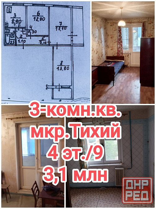 продам 3-комнатную квартиру на Тихом, Петровский р-н , 4 этаж9