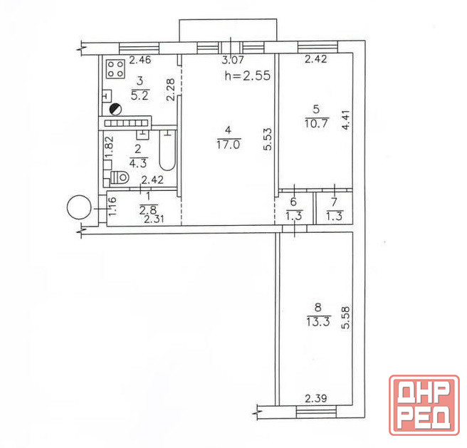 4 этаж 5-этажногодома. общая площадь – 56,6 м2. жилая площадь – 41 м2. площадь кухни – 5,2 м2. смешанная планировка. санузел совмещенный. балкон застеклен. хорошее состояние. мебель. бытовая техника. металлопластиковые окна. кондиционер. бронированная дверь. домофон. накопительная ёмкость для воды.