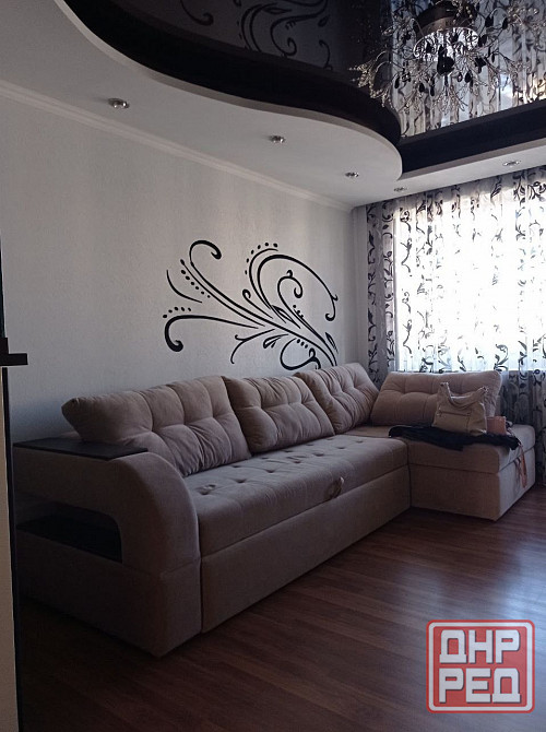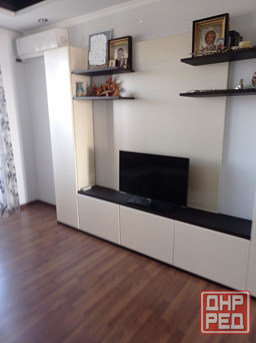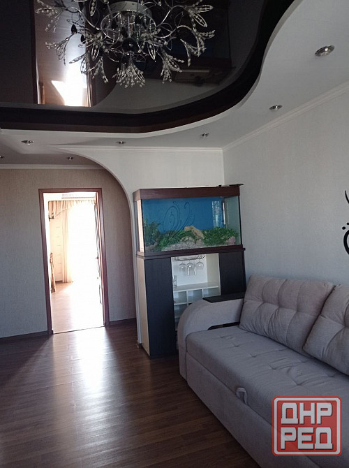 - в гостинной - угловой диван, кондиционер, аквариум, барная тумба;