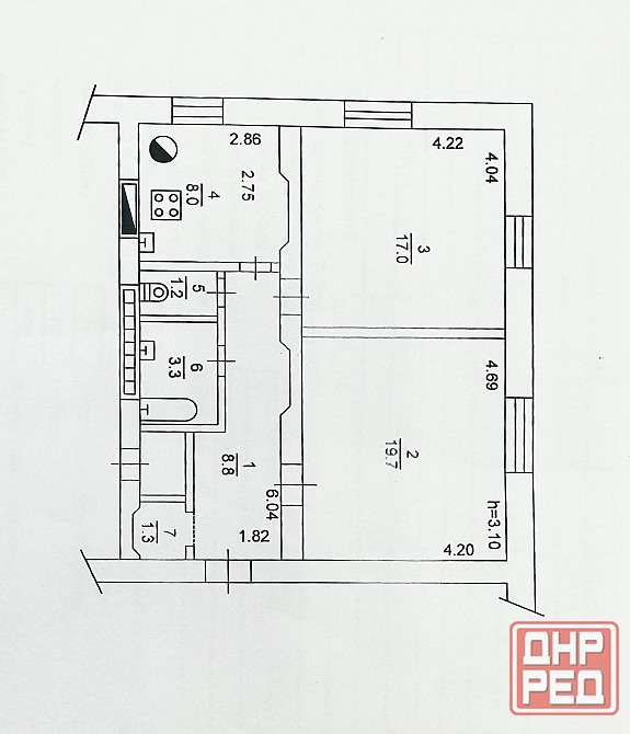 • высота потолков: 3.10м.