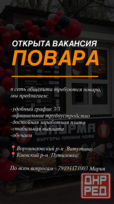 Открыта вакансия повара
