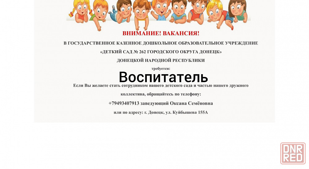 детский сад № 262 требуется воспитатель