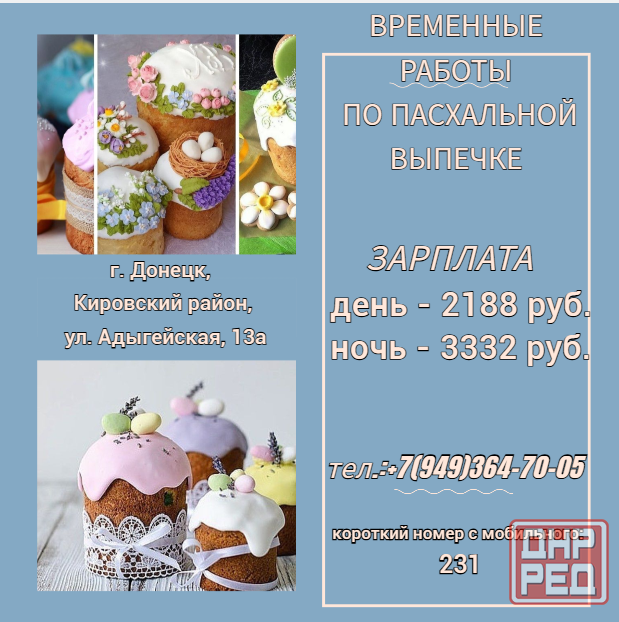 требуются временные сотрудники на пасхальную выпечку.
