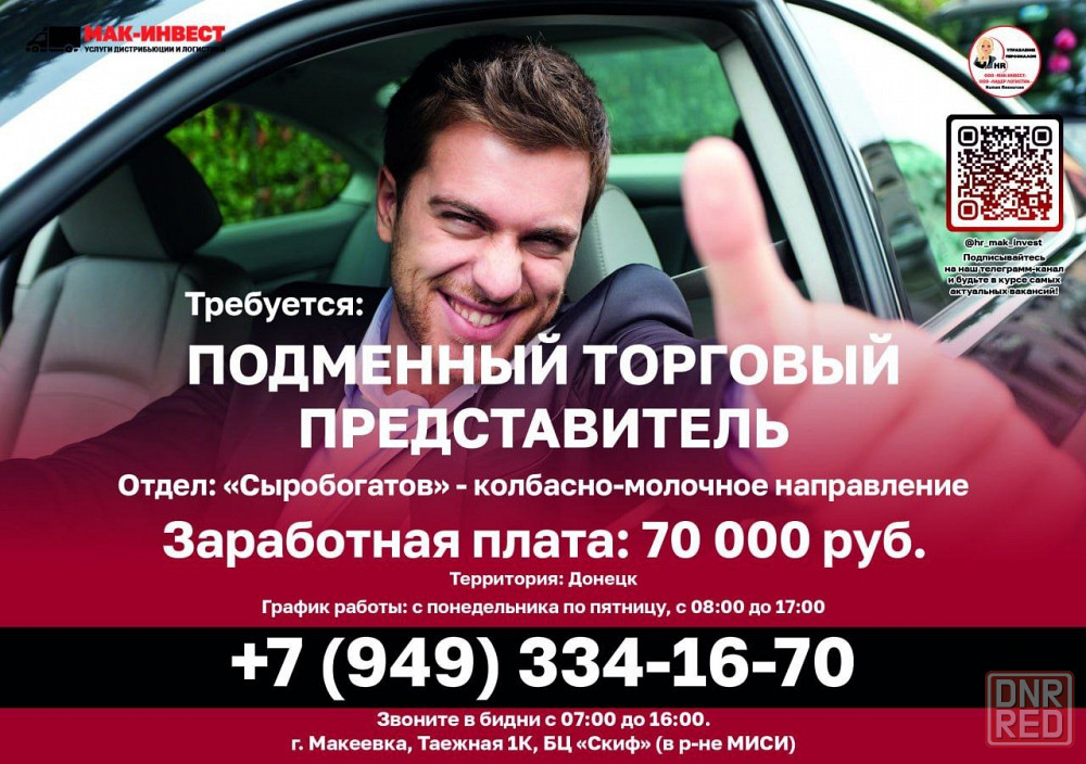 🔥требуются сотрудники в ооо "мак-инвест": г. макеевка, ул. таежная, 1к.