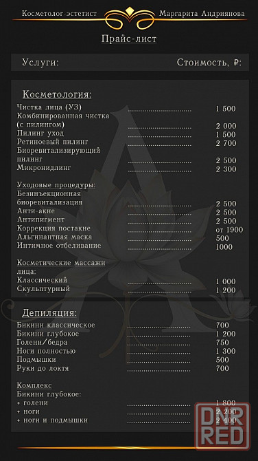 • профессиональные процедуры: чистки лица, пилинги, уходовые процедуры, микронидлинг, массаж лица и фитодепиляция.