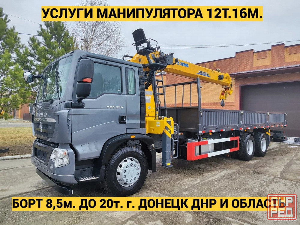 услуги howo манипулятора по г. донецк днр и область. мощная стрела грузоподъемностью 12т. длина стрелы 16м. борт 8,5 метров, грузоподъемность до 20т. есть люлька, высота подъема с люлькой 18м. перевозим различные грузы. работаем с юр. лицами. оплата нал/безнал. есть ндс 22%. в нашем парке множество различной спецтехники для выполнения ваших задач. смотрите все объявления.