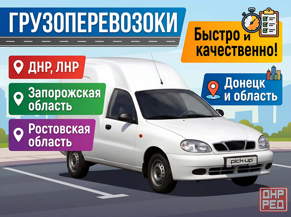 организуем грузоперевозки по донецку, области, днр, лнр, запорожской и ростовской областям. автомобиль ланос-пикап, грузоподъёмность до 300 кг 1 паллет/место. оперативно и надёжно! безналичная оплата от ип без ндс.