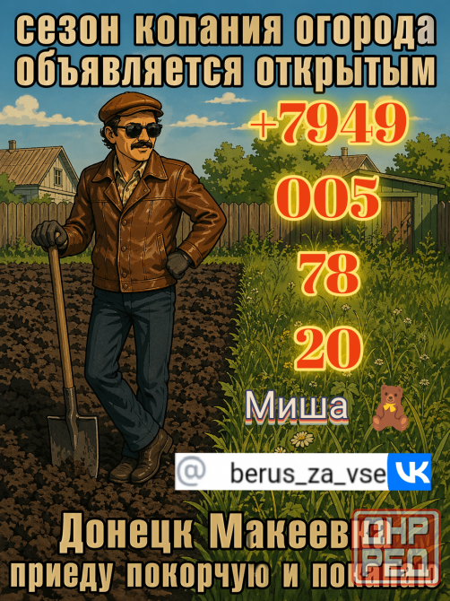 ✔ копка огорода, помощь на участке