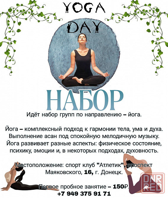 идёт набор групп по направлениям: йога, аэробика. тренер - мастер спорта.