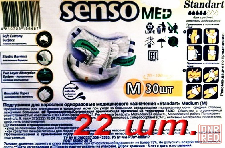 подгузники памперсы для взрослых senso стандарт беларусь размер м обхват 70-120 см. упаковка вскрыта, 22 шт. 400 руб. в донецке центр. тел. +79494335..📲. владимир.