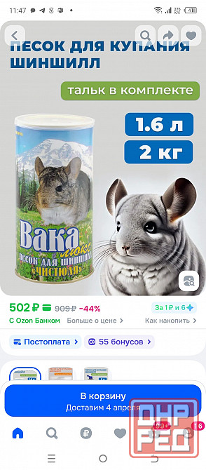 -песок в пакете 700 грамм- нежный,пылеобразный - для купания шиншиллы.