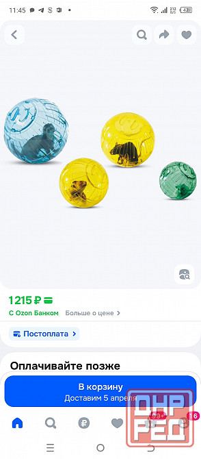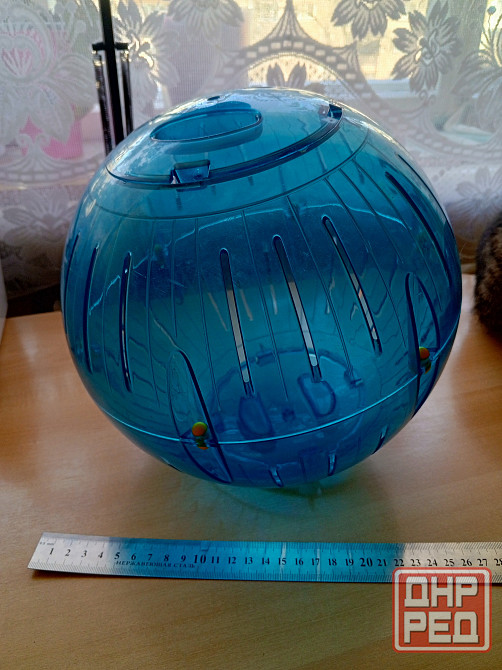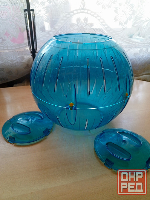 -пластиковый прогулочный шар фирмы savic,пластик прочный,защёлки на крышках держатся хорошо.крышки открываются с двух сторон.есть отверстия для воздуха.диаметр шара-28 см. на озоне стоит 1200