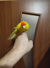 молодые какарики, самцы. возраст 2 месяца. выкармливались вручную с двух недель. уже приручены к человеку. когда на выгуле, сами заходят в клетку чтобы поесть. свободно даются в руки, не кусаются.