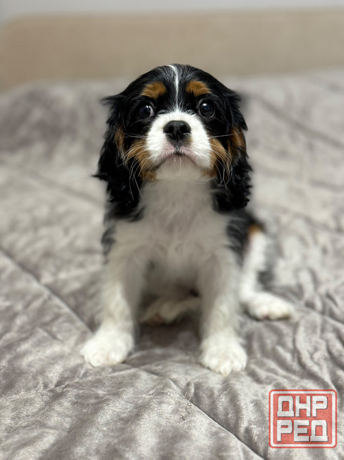 кинг чарльз спаниеля в эффектном трехцветном окрасе черно-рыже-белый. малыш с очень милой, выразительной мордочкой, ласковый, контактный и ориентированный на человека — настоящий компаньон для семьи. ❤️