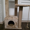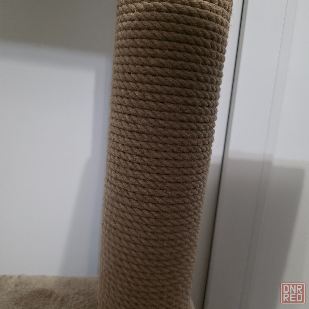 есть 3 столбика с джутовой обмоткой 60см, d10см каждый +1 декоративный, 3 полочки 35×35см, домик внизу отличное укромное место для кошки, 2 каната-дразнилки для игр.