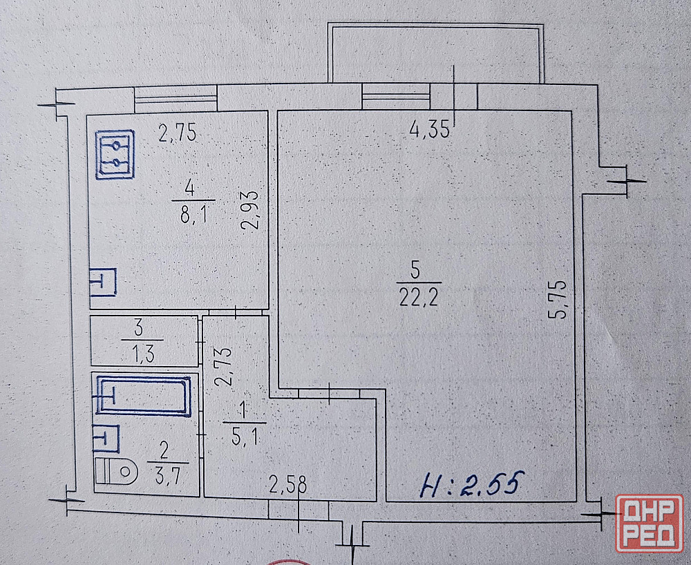 Жилая площадь: 22.2 м2