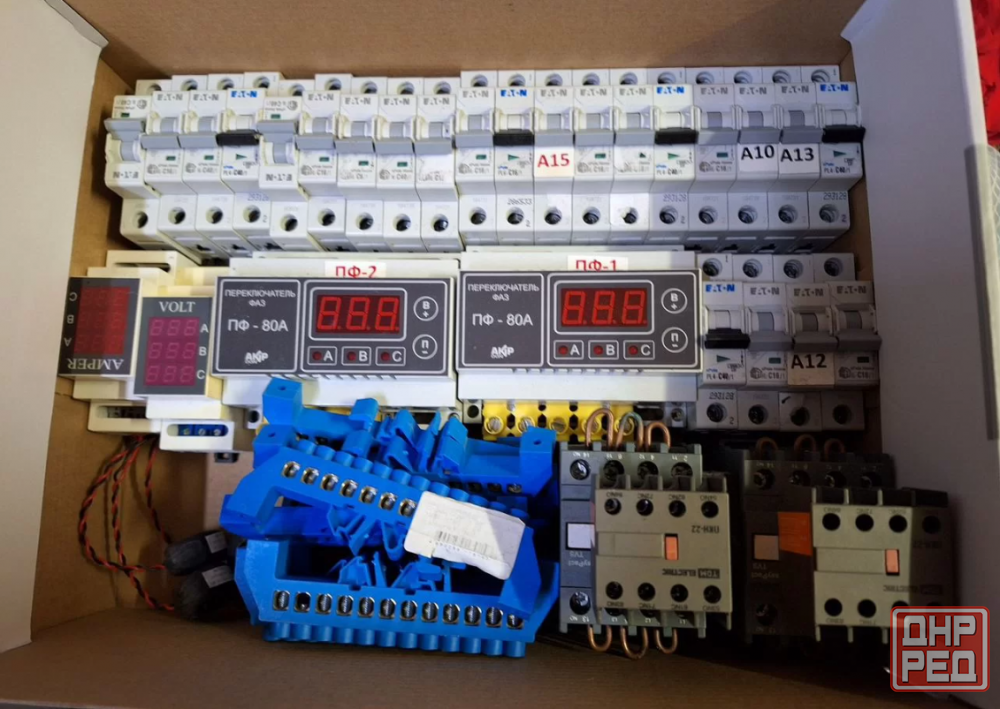 автоматы 23 штуки, трехфазные переключатели фаз 2 штуки по 80 ампер каждый, один вольтметр, 1 амперметр тоже трехфазные, 2 пускателя шнайдер на 32 ампера, и клемники. продаю все за 10 000 рублей.