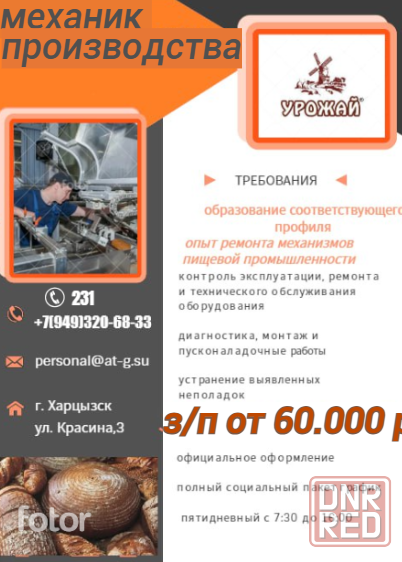 производитель хлебобулочных изделий приглашает на работу механика производства.