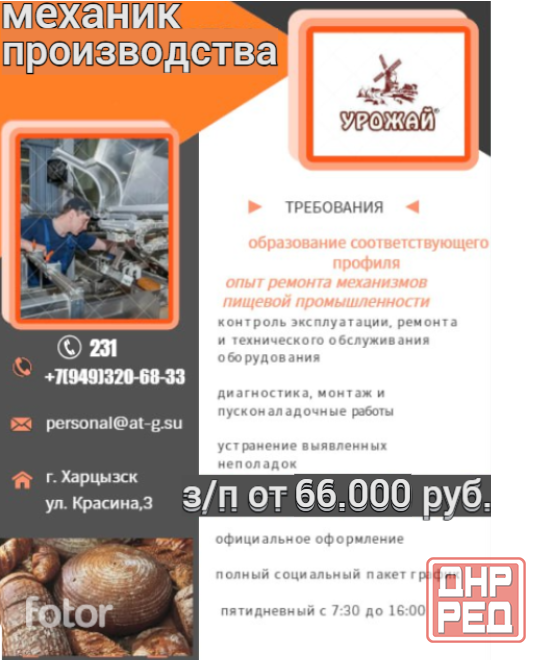 производитель хлебобулочных изделий приглашает на работу механика производства.
