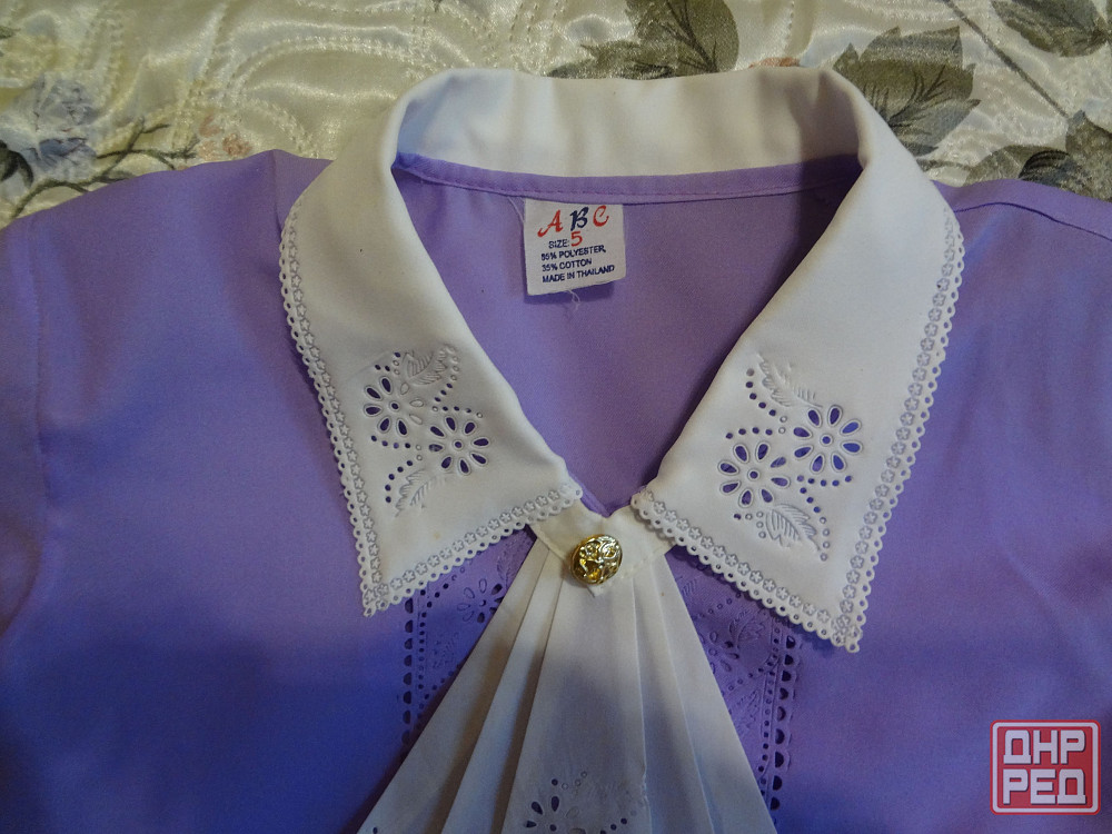 продам блузу детскую сиреневую для девочек 8-10 лет в хорошем состоянии, р.5, производитель – таиланд. ткань – 65% полиэстер, 35% хлопок.