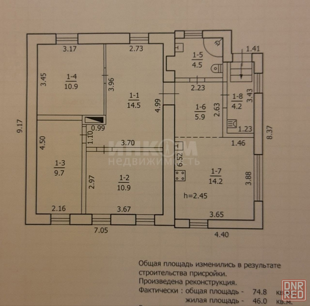 общая площадь 75 м2.