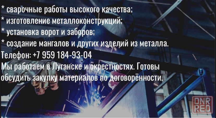 предоставляем высококачественные сварочные работы и изготовление металлоконструкций в луганске и его окрестностях. наши услуги включают установку ворот и заборов, создание мангалов и других изделий из металла. мы также готовы обсудить закупку необходимых материалов по договорённости.