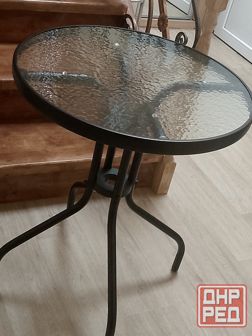 продам шикарный ,садовый стол, основание металл, столешница каленое стекло,высота 70 см, диаметр столешницы 60 см, идеально впишется на балкон,небольшую кухню или вместо журнального столика