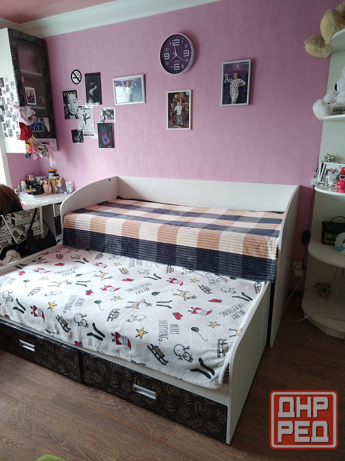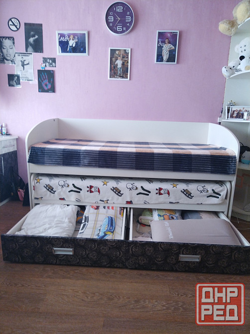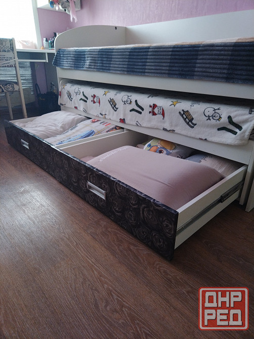 кровать двухярусная с ящиками для белья. фасады мдф. изготавливали индивидуально. матрасы ортопедические фирмы "беарто"-включены в стоимость. очень комфортно спать. габариты кровати:1800 мм х 800 мм.