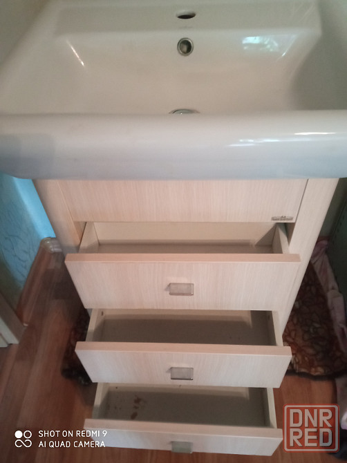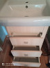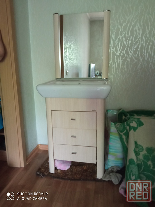 очень срочно и очень дешево продам комплект мебели для ванной комнаты производство польша.в комплект входит тумба род умывальник с тремя выдвижными ящиками фаянсовая квадратная раковина 60/47 см. настенное зеркало кран и сифон со сливом.