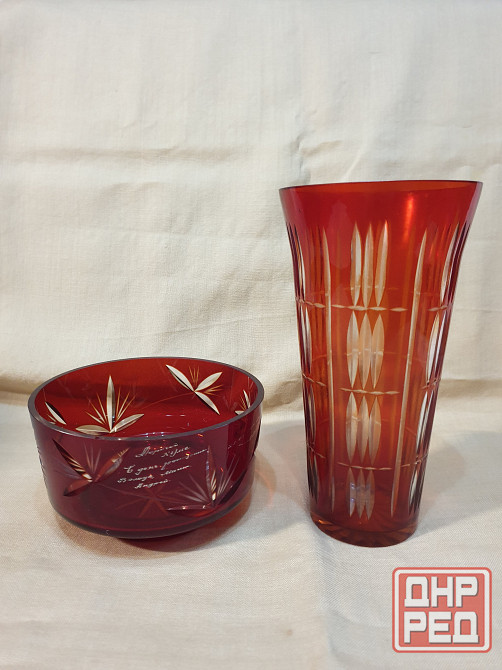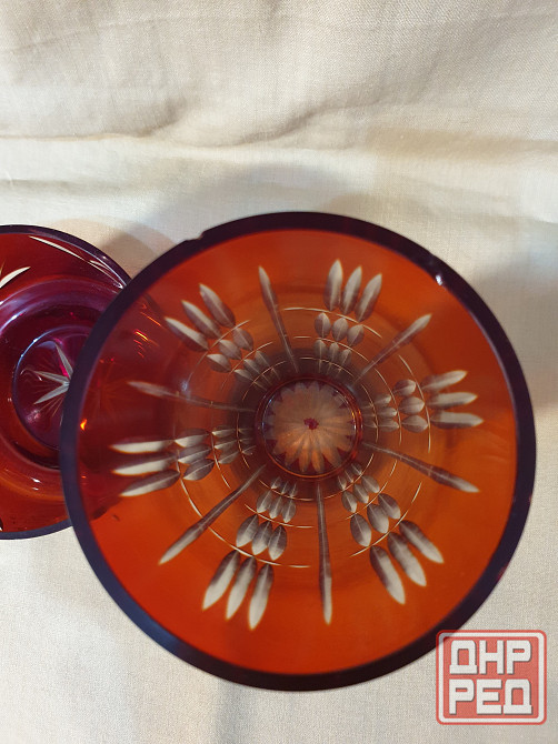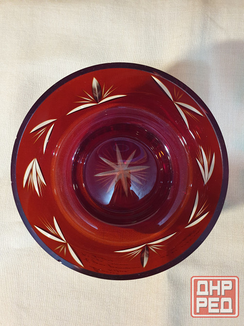 конфетница, салатница цветной хрусталь д.16 см в. 9см целая, по краю есть щербинки 500р