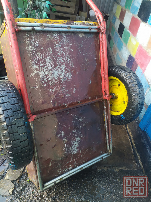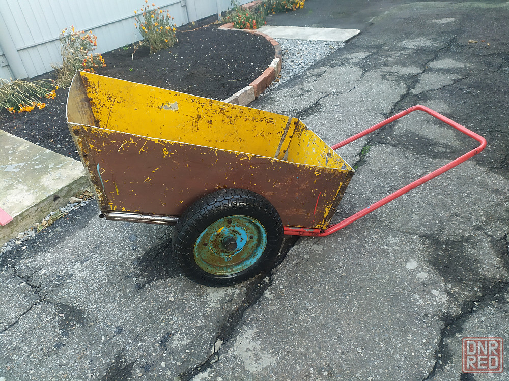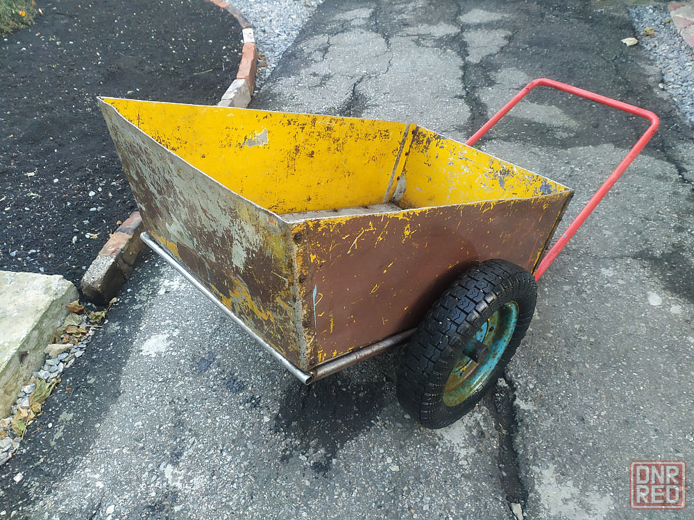 тачка садовая строительная очень крепкая, можно и под прицеп для мотоблока. рама из нержавейки, дно и борта алюминий 3мм, ручка из черного металла. вечная и надежная. из минусов - спускают колеса. доставки нет. самовывоз