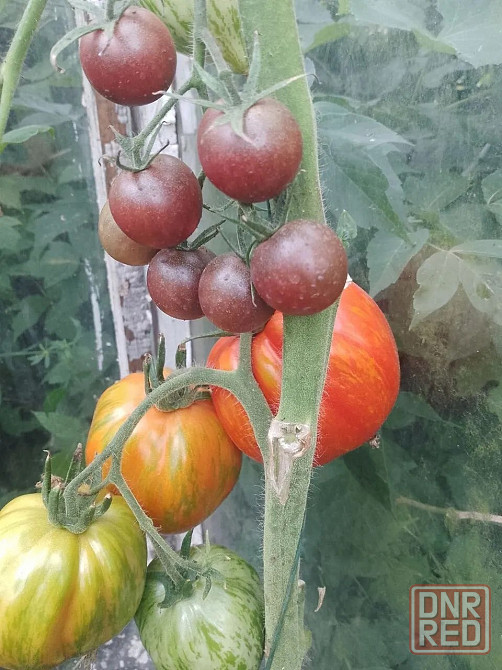 плоды: созревают на длинных ветках по 6–8 штук, в среднем — около 60 г. форма — круглая с небольшой приплюснутостью у основания. в начале роста томаты зелёные, по мере созревания — тёмно-фиолетового или даже чёрного цвета такую окраску придаёт вещество антоциан. кожица тонкая и гладкая, мякоть плодов мясистая и сочная.