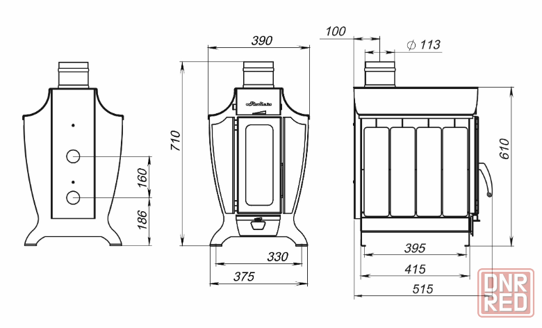 stoker 100-g - это дровяная отопительная печь длительного горения с возможностью подключения газовой горелки для магистрального природного газа, либо горелки для сжиженного природного газа из баллона.