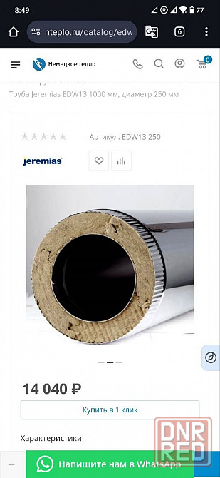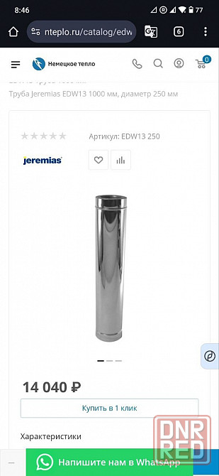 Труба дымоходная Jeremias edw13 1000 мм, диаметр 250 мм