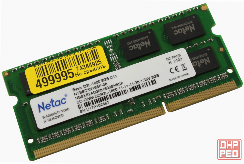 модуль памяти sodimm ddr3l 8gb netac ntbsd3n16sp-08 pc12800, 1600mhz, c11